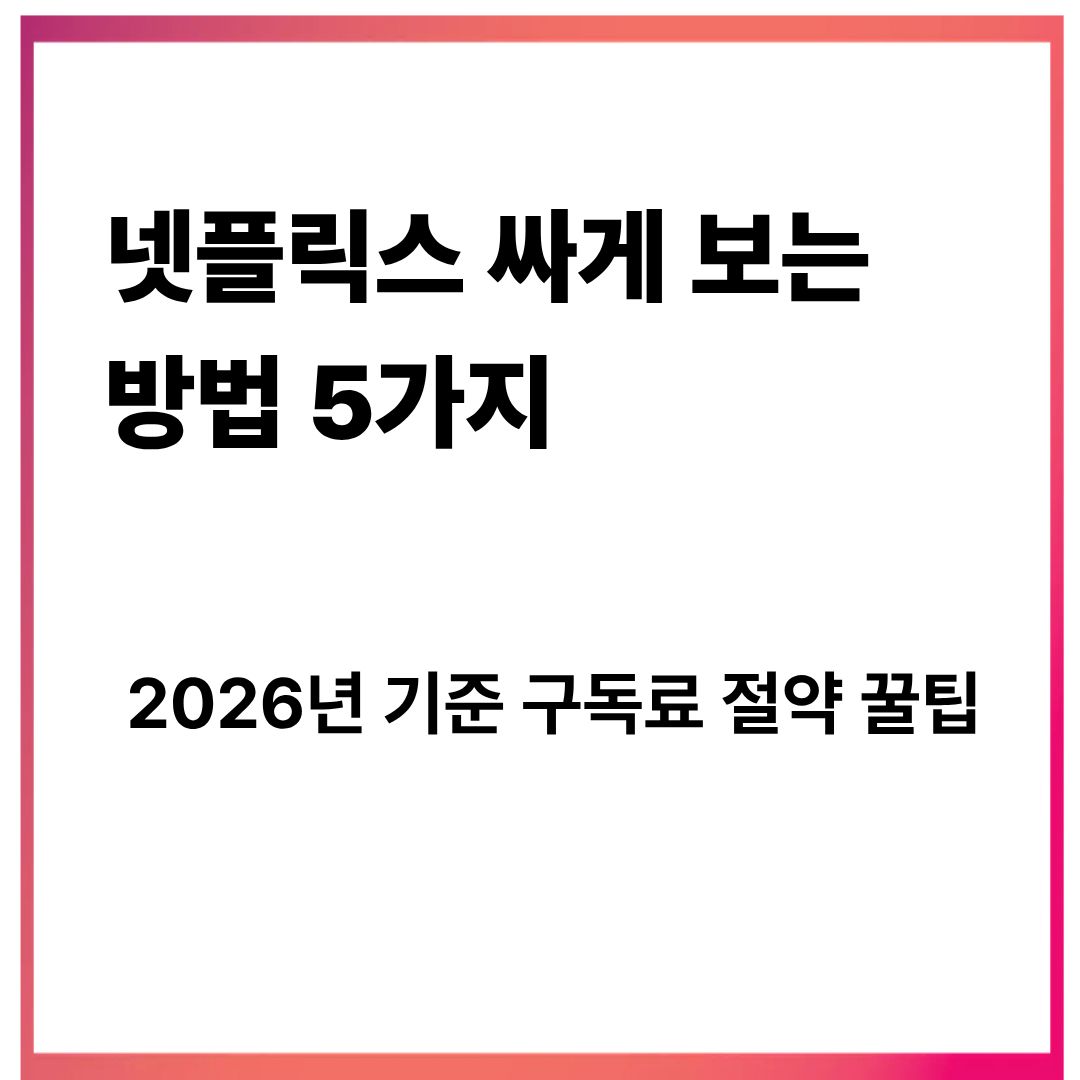 넷플릭스 싸게 보는 방법 5가지 (2026년 기준 구독료 절약 꿀팁)