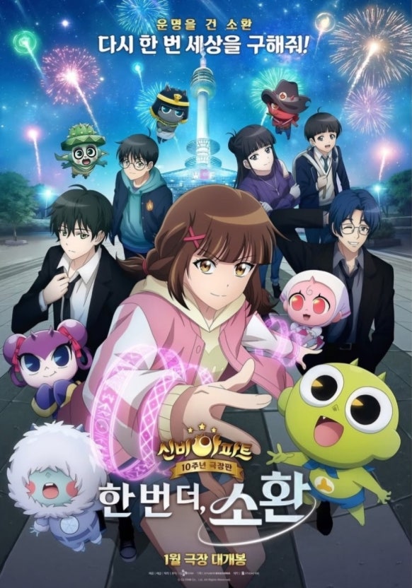 2026년 1월 14일 개봉한 〈신비아파트 10주년 극장판: 한 번 더, 소환〉은 10년간 사랑받아온 시리즈의 기념비적 작품입니다. 20살이 된 구하리와 대스타가 된 신비의 이야기를 통해, 시간이 흘러도 변치 않는 우정과 끝없이 계속될 모험을 그려냅니다. 오랜 시간 잠들어 있던 어둠의 군주 지하국대적의 부활과 전 세계 도깨비들이 모이는 세계 도깨비 축제는 시리즈 최대 스케일의 위기를 예고합니다.